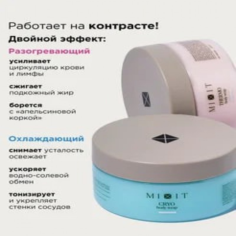 МИКСИТ Набор горячее и холодное обертывание для похудения, избавления от целлюлита и растяжек FAT BREAKING SET. В антицеллюлитный бьюти бокс входит ледяное охлаждающее крио обертывание с текстурой геля Cryo и разогревающее термо обертывание с текстурой крема Thermo. Средство в банке 200 мл. Холодное обертывание с мятой и ментолом от отеков борется против целлюлита, способствует повышению упругости кожи и коррекции фигуры. Крем от растяжек направлен на осветление пигментных пятен и подтяжку проблемных зон живота и ягодиц. Горячее обертывание с перцем и маслом ши направлено на отбеливание тона кожи, уменьшение отечности и активное жиросжигание жирной кожи. Благодаря согревающему эффекту средство оказывает лимфодренажное действие. Набор горячее и холодное обертывание составом от сухости и жирной кожи. Алоэ вера запускает регенерирующие и восстанавливающие процессы в клетках комбинированной и проблемной кожи. Жиросжигатель с aloe интенсивно увлажняет. Соль устраняет шелушения, масло грейпфрута запускает обменные процессы и ускоряет сжигание жира. Профессиональный пантенол направлен на увлажнение и восстановление защитной оболочки кожи. Масла мяты и ментола обеспечивают подтягивающий эффект. Ламинария оказывает эффективное антивозрастное действие, обладает увлажняющими свойствами и насыщает кожу влагой. Масло ши обеспечивает смягчающее действие. Масло апельсина запускает омолаживающие процессы в клетках и оказывает отбеливающий эффект. Увлажняющий питательный крем обертывание нанести тонким слоем под пленку, смыть через 20-30 минут. Выравнивающий лифтинг эффект, сохранение красоты кожи, устранение растяжек и целлюлита для комбинированной кожи. Уходовые средства с кислотами подходят для всех типов кожи: нормальной, очень сухой кожи и жирной, обезвоженной и чувствительной, возрастной. Новогодний подарок для женщины. Аптечная косметика девушкам на новый год. Женские косметические товары для душа и ванной. Средство в баночке 200 млПолное наименование товара крем антицеллюлитный жиросжигающий против растяжек Состав экстракт ламинарии; эфирное масло грейпфрута; масло мяты; Розовая гималайская соль; эфирное масло апельсина; масло ши; масло жожоба; масло абрикосовых косточек; масло черного перца; касторовое масло; пантенол; линолевая кислота; вода; ксантановая камедь; цетеариловый спирт; антицеллюлитный гель aloe; регенерирующее масло макадамии; Органическая косметика; алоэ; ментол Тип кожи для жирной кожи; для проблемной кожи; для сухой кожи Действие против растяжек; лифтинг; похудение жиросжигающий антивозрастной упругость Время нанесения дневной; ночной; универсальный SPF без УФ защиты; подтягивающий; липолитик Объем товара 400 мл Срок годности 36 мес Страна производства Россия Комплектация Крем для тела, 200 мл - 2 шт.; Жиросжигатель Описание